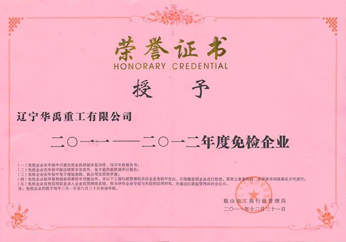 免檢公司資質證書